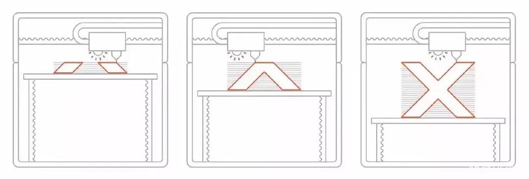 使MJ獨特的另一個方面是材料如何沉積(并因此固化)?;旧?,MJ打印機沿著X軸載體從多個打印頭噴射樹脂,X軸載體在不斷變化的打印件上來回移動。為了幫助可視化設(shè)備的運動,請參考2D掃描儀中的光源或汽車的雨刮。